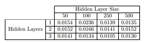 Project done for course of Computational Intelligence in Business Applications at Warsaw University of Technology - Department of Mathematics and Computer Science Karol Dzitkowski 's result is as follow.(High Frequency Trading Price Prediction using LSTM Recursive Neural Networks, Karol Dzitkowski) RNN avg err = 0 . 5 6 7 3 0 0 7 2 4 6 3 8 epsilon = 0.5, SGD optimizer