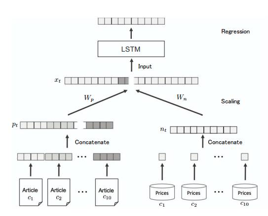 make decisions according to various factors, including consumer price index, price-earnings ratio, and miscellaneous events reported in newspapers. In order to assist their decisions in a timely manner, many automatic ways to analyze those information have been proposed in the last decade. However, many of them used either numerical or textual information, but not both for a single company. In this paper, we propose an approach that converts newspaper articles into their distributed representations via Paragraph Vector and models the temporal effects of past events on opening prices about multiple companies with LSTM. The performance of the proposed approach is demonstrated on real-world data of fifty companies listed on Tokyo Stock Exchange.