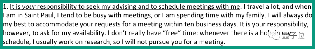 包括要主动约老师讨论课题、学生自己学习读文献&写论文、需要工作推荐信请提前两周提出……