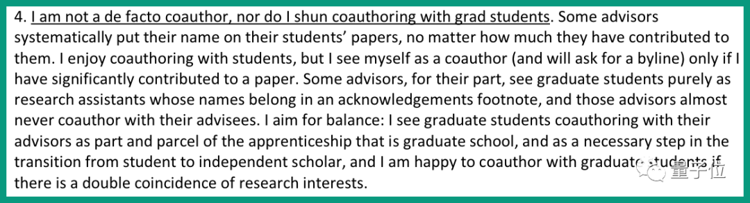 他表示自己不会这么做,只有当研究兴趣有重合时,他才会和学生合著论文。