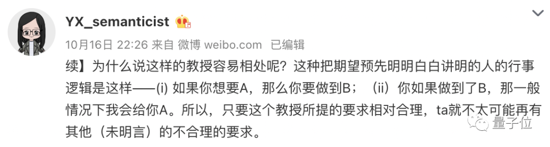 比如有网友看完第二、三条的“要求学生自己学习工具、读文献、掌握写作技巧”后,提出“学生要一开始就会这些的话还要导师干嘛?”向伊梅则表示: