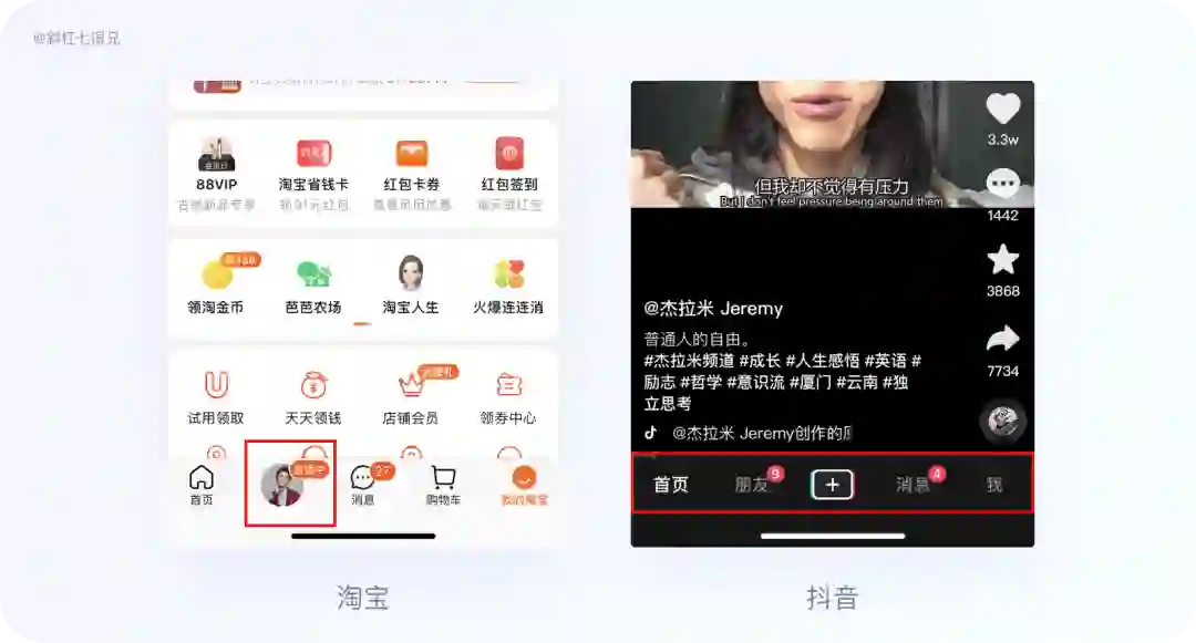 但是你打开手机的应用,会发现很多日活过亿的产品,都是在图标下面加了文案,比如淘宝,不仅在图标下面加了文案,并且还会在旁边注明当前的状态,抖音更是图标都省了,直接上文案。