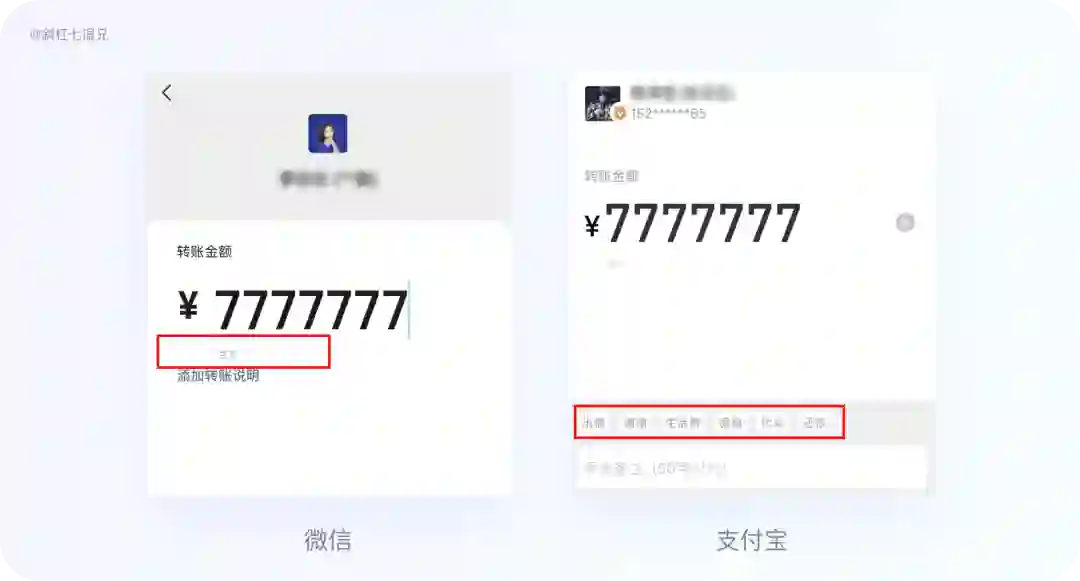 大部分用户都不喜欢计算或者投入很多脑力活动,更希望的是产品整体的操作流程是简单、高效的,并且在简单、高效地体验同时,还能保证产品的准确性,尤其是数字类场景,不会因为自己的理解错误,带来意外的财产损失,我最近体验微信和支付宝就发现了下面两个功能点的差别。