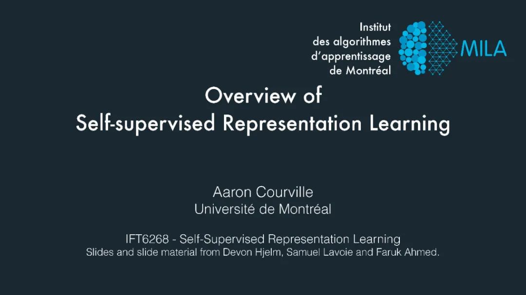 来自MILA,Aaron Courville的《自监督表示学习综述》, Introduction II - Overview of self-supervised representation learning?