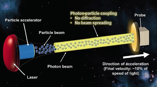 这是一种全新的、创新的光束推进结构,它可以使前往比邻星(Proxima Centauri)的星际任务成为现实。这一结构大大增加了航天器加速的距离(与激光推进相比),同时将发射机的光束尺寸减小到10米以下。这些优势转化为“方向和速度的变化”(delta-V)和有效载荷质量,比激光推进强大得多。这个推进架构主要是面向星际飞行任务,也可能使前往奥尔特云天体的速度更快。这个推进概念的关键创新是将中性粒子束和激光束结合在一起,这种方式既不会让光束扩散也不会随着传播距离而发散。