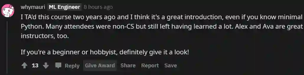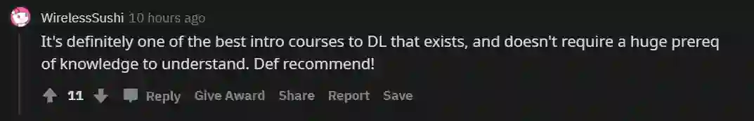 有人甚至称赞说:「在现有的课程里面,这绝对是最好的深度学习入门课程之一。」
