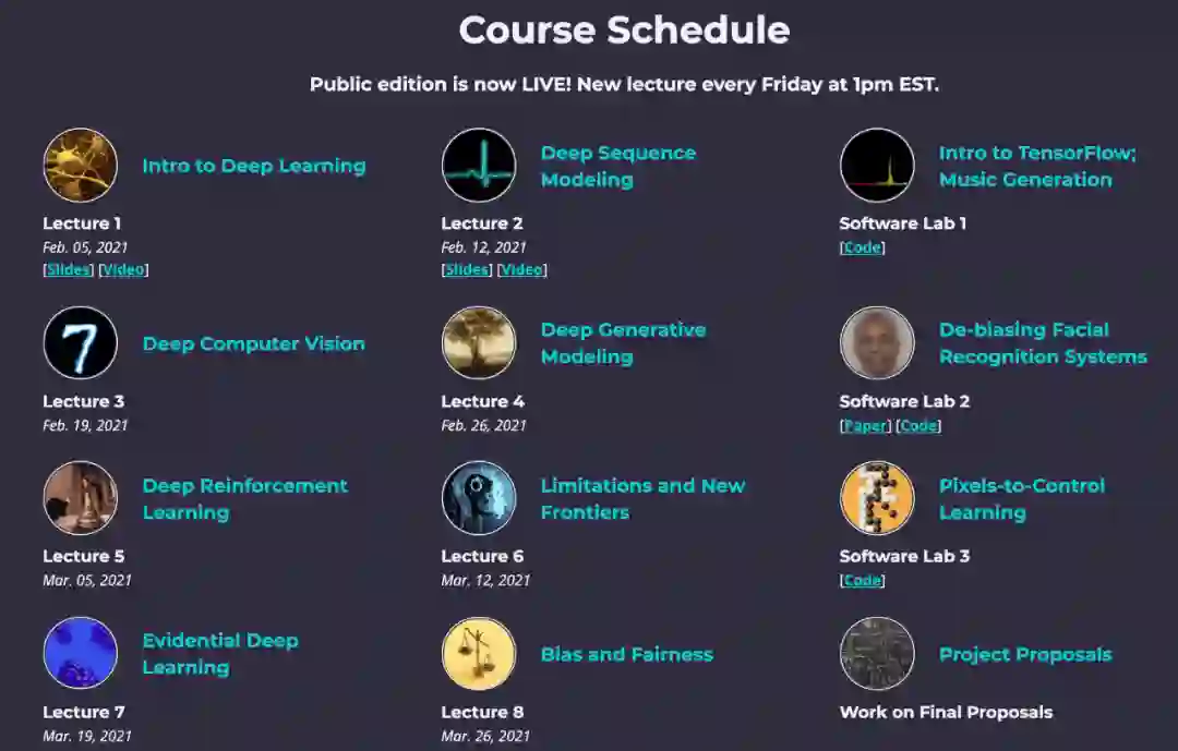 该课程的主要组织者和讲师 Alexander Amini 是麻省理工学院(MIT)的博士生,导师为 Daniela Rus 教授。Alexander Amini 同时还是 NSF Fellow,并在 MIT 完成了电子工程与计算机科学理学学士和理学硕士学位,并辅修数学。