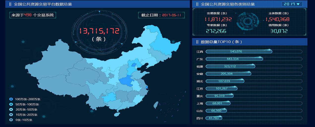 将727个公共资源交易及政务采购系统完全纳入到了国家信息中心同一数据管理平台,并实现了实时数据的即时传输。为国家发改委、国资委、工信部、财政部等16个部位提供了基于公共数据交易和政务采购方面的数据查询平台。此外,基于公共资源交易的数据深度挖掘,为国家发改委法规司建设了一站式数据挖掘工具,提供了数据挖掘专题获得了各部位的高度好评。
