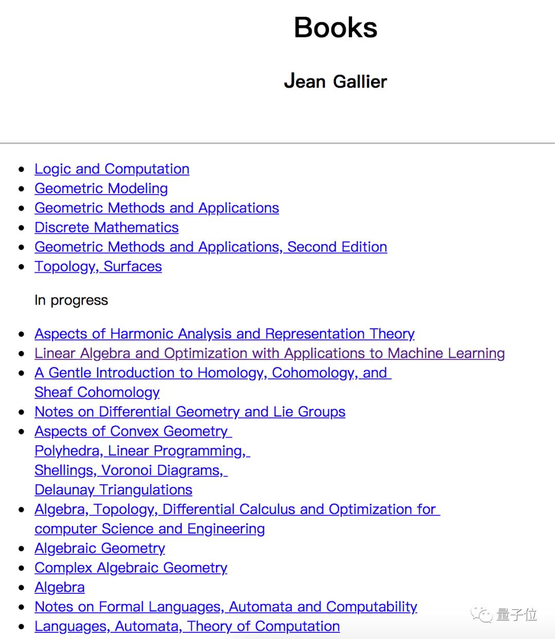 这本书的作者,是宾夕法尼亚大学计算机系教授Jean Gallier,今年已经70岁了。