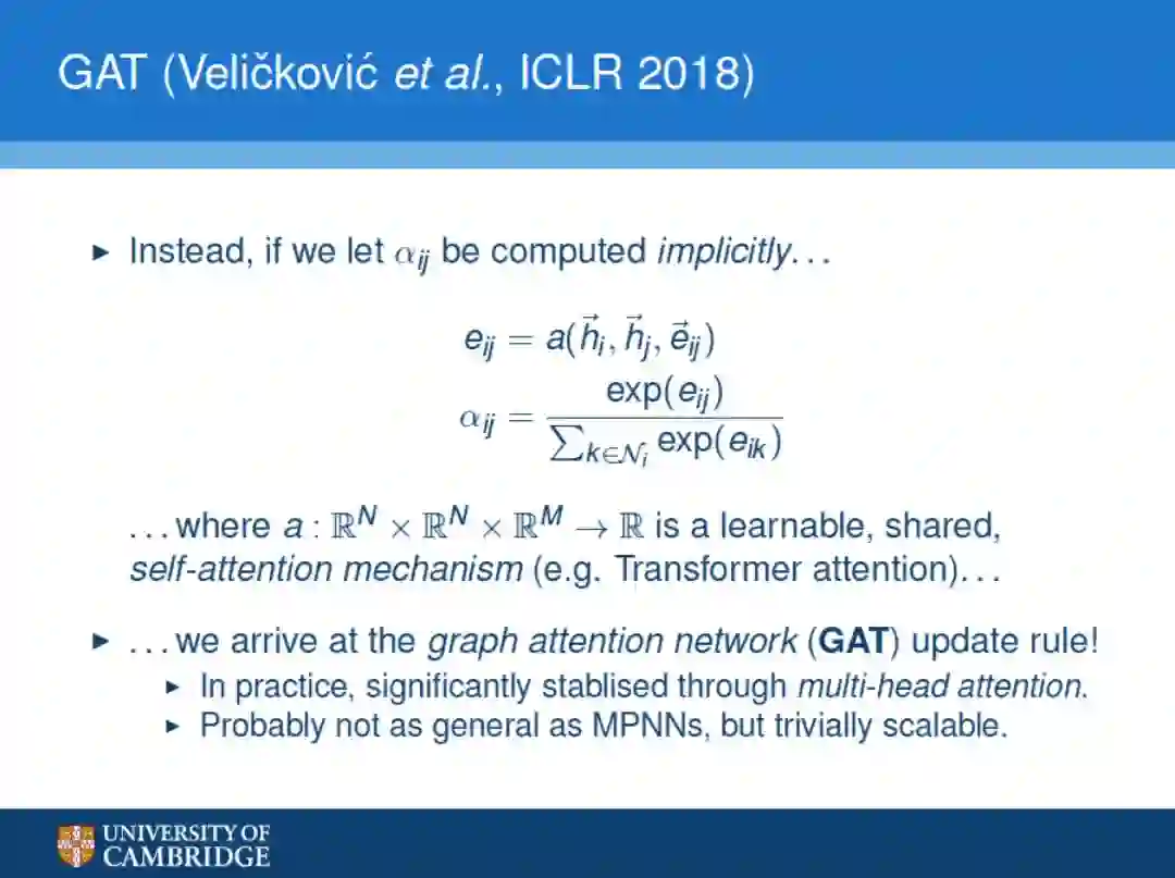 这两页ppt主要介绍了Veliˇckovi´cet al.(ICLR 2018)提出的graph attention network(GAT)。