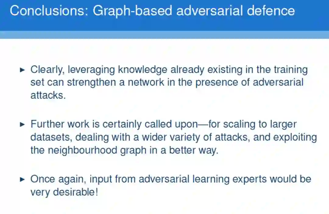 最后,Petar讲了基于图的对抗防御,利用训练集中已有的知识可以在对抗性攻击的情况下加强网络。
