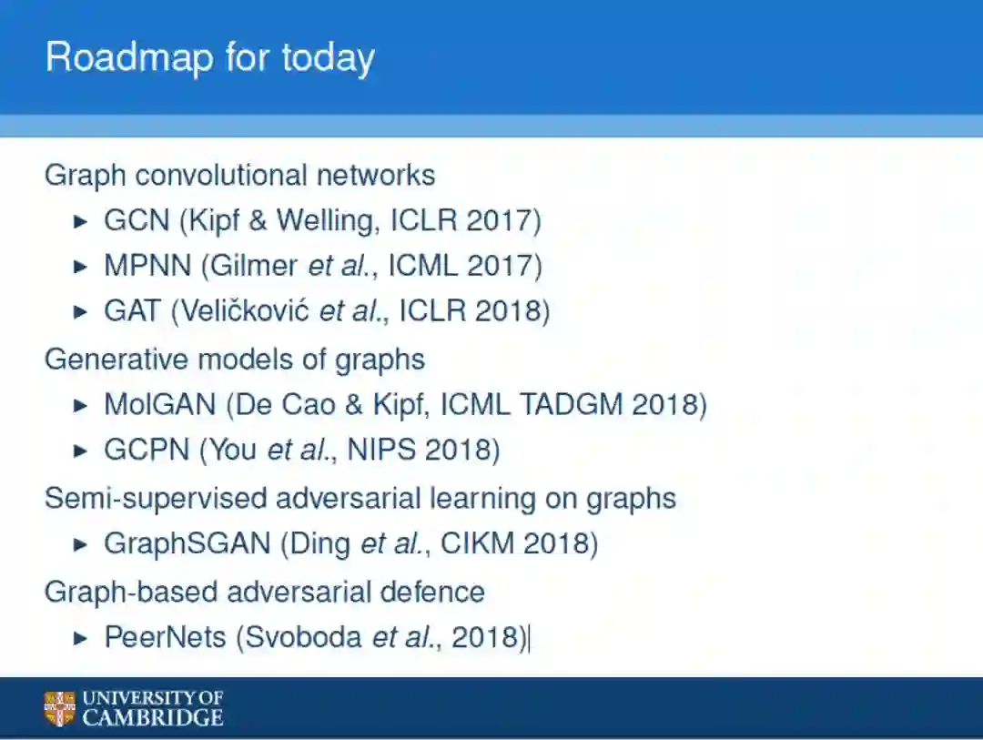 【导读】近期,图卷积研究大神Petar Veličković在蒙特利尔作了一场关于Graph+GAN的报告,详细讲解了图卷积网络的基本概念以及最前沿的方法 GCN、GAT (Petar的代表作),以及基于图的生成式方法,如何使用GAN进行基于图的学习,并强调需要使用强化学习或Gumbel softmax来进行反向传播,也指出尽管图的生成式模型效果很好,但未来还需要在这个方面需要更多的研究者一起探索。