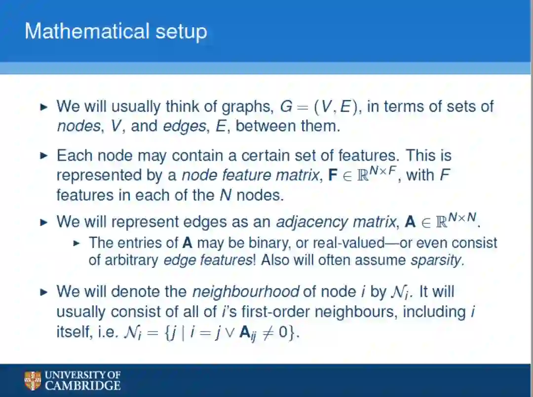 用数学的语言来描述什么是图graph,什么是特征矩阵,什么是邻接矩阵,以及节点之间的关系等等。