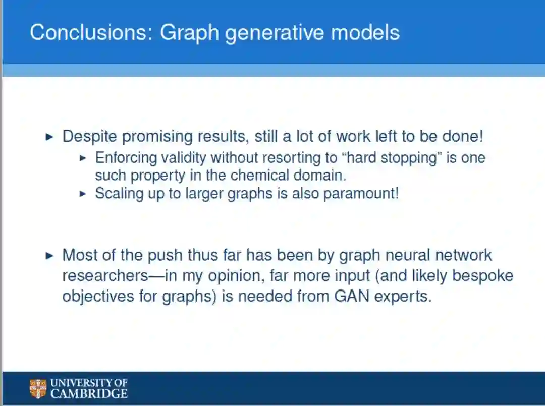 讲者指出,尽管图的生成式模型效果很好,但还有很多工作要做! 以及需要更多GAN专家的支持。