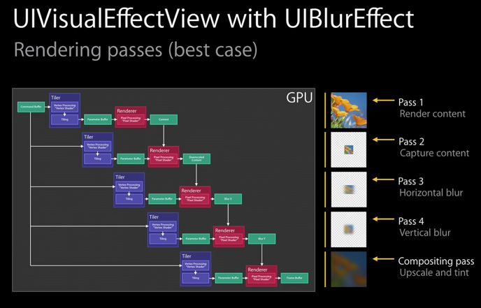 使用UIBlurEffect,应该是尽可能小的view,因为性能消耗巨大。