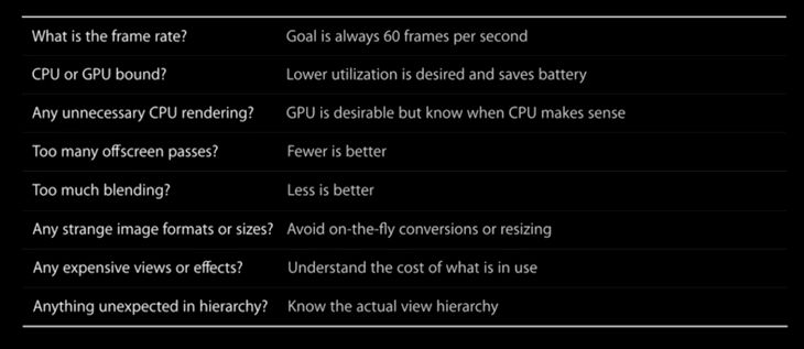 避免格式转换和调整图片大小;一个图片如果不被GPU支持,那么需要CPU来转换。(Xcode有对PNG图片进行特殊的算法优化)