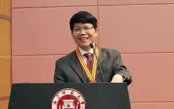 图为陈志坚研究员在福建师范大学作报告(图片来源:学校官网)