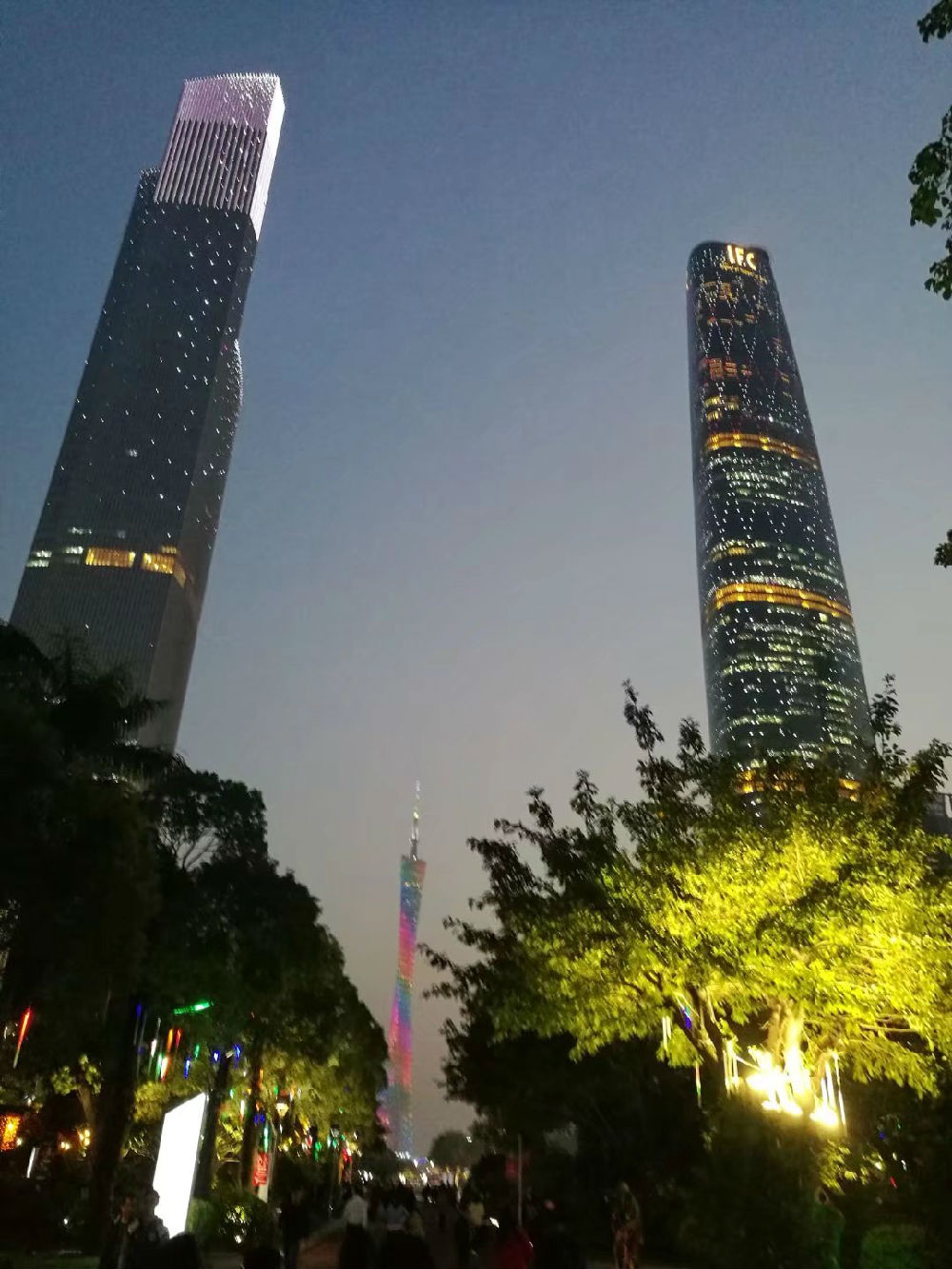 再回到花城广场,已是华灯初上的夜晚,由于财富论坛期间,平时只有在节假日才会有的广州塔激光表演也打开了。广场有点异样的感觉就是军警,安保力量明显加强。我们也看到海心沙区域不断有许多航模的直升机升降,我还与大家讨论若从安保的角度,为什么要那么多的航模呢?也许是航模俱乐部申请了活动。看到没有其它新的表演,我们一行人8点多离开回校,车在停车场停了6个多小时,每部车停车费50元,只是宾馆停车费的一半左右。