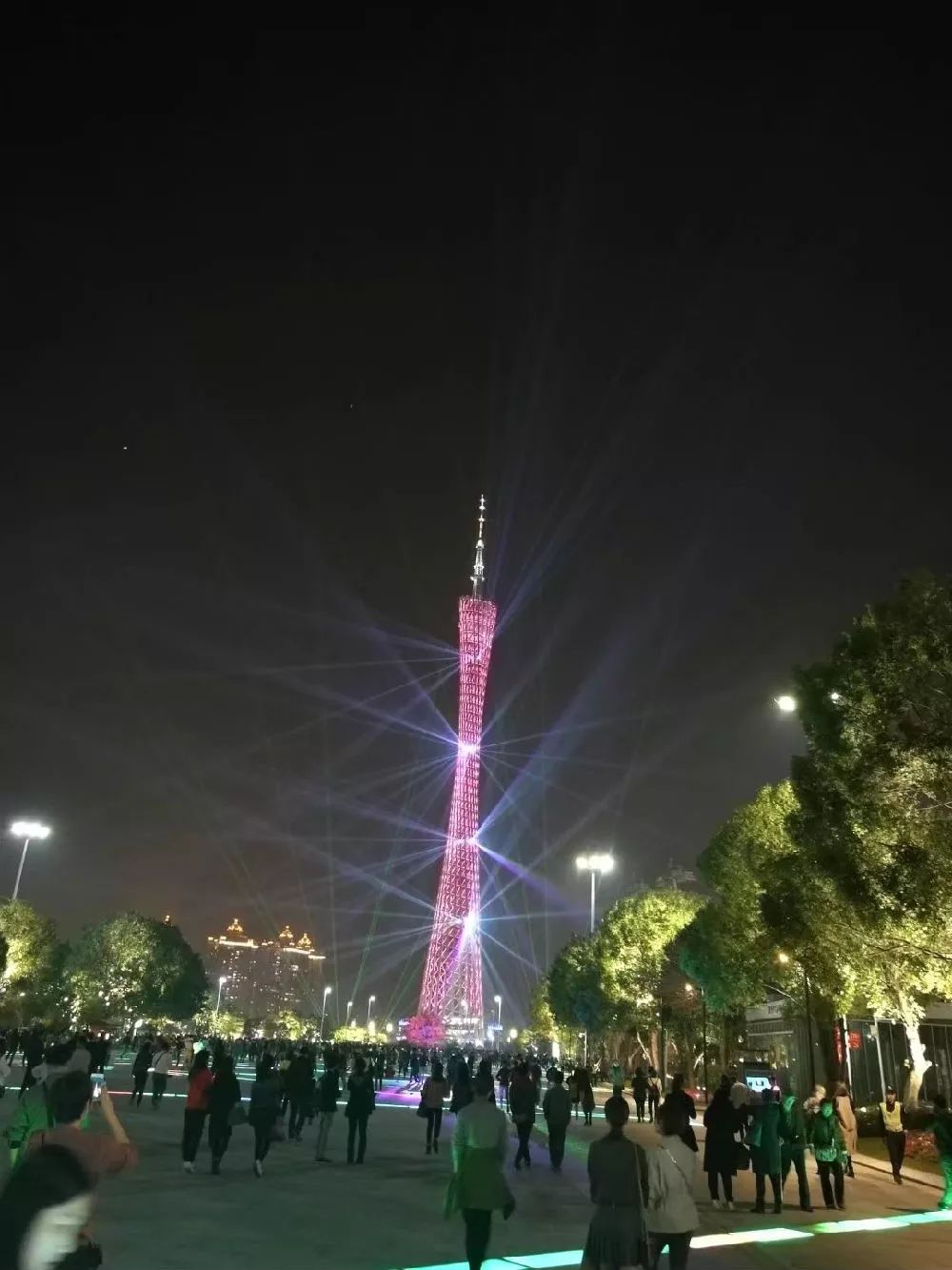 回到学校,很快我们就后悔了,我们错过了一场难得一见的演出,若再在花城广场等半个多小时,当晚9点在花城广场与广州塔之间,就有一场由1180架无人机进行的华丽演出,既有整齐的文字队形,更有浪漫的彩雪飞舞。