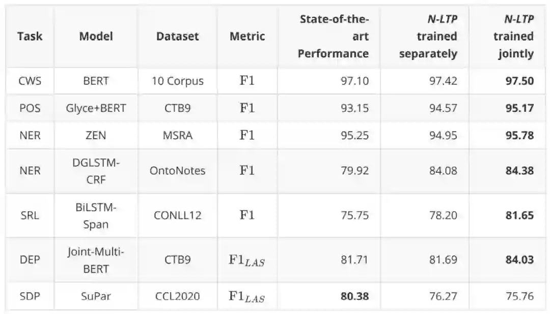 与现有的广泛使用的NLP工具包相比,N-LTP具有以下优点:
