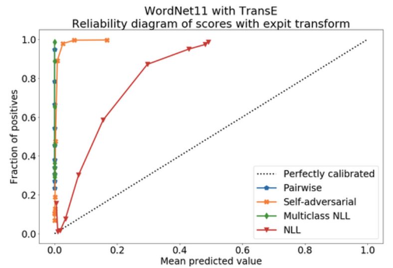 作者采用Brier评分来测量校准,采用Platt缩放和等渗回归来优化校准评分,并提出了在没有给出“hard negatives”的典型链接预测方案中对负样本进行采样的策略。于是,你可以校准KGE模型,并确保它会返回可靠的结果。这是一个非常好的分析,结果表明在一些工业任务上,你可以用KGE模型来提升你对自己算法/产品的信心。