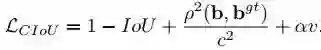 中心点距离,然而anchor框和目标框之间的w,h比的一致性也是极其重要的。基于此,作者提出了Complete-IoU Loss。其损失函数定义如下: