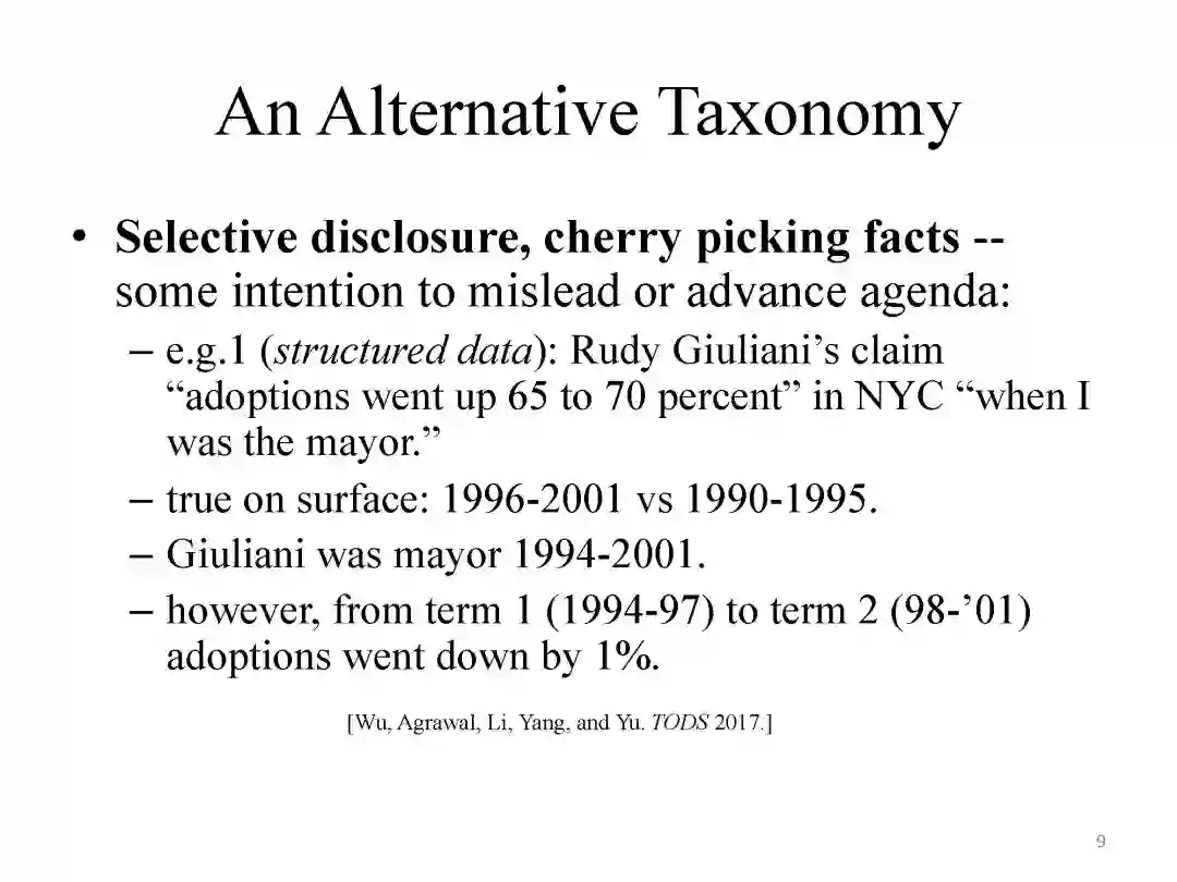 Wu, Agrawal, Li, Yang, and Yu. Computational Fact-Checking through Query Perturbations. ACM TODS 2017.