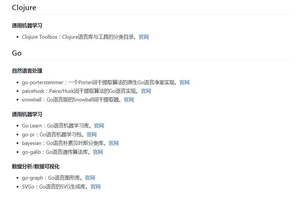 作者的话:我想很多程序员应该记得 GitHub 上有一个 Awesome - XXX 系列的资源整理。awesome-machine-learning 就是 josephmisiti 发起维护的机器学习资源列表,内容包括了机器学习领域的框架、库以及软件(按编程语言排序)。Awesome 系列虽然挺全,但基本只对收录的资源做了极为简要的介绍,如果有更详细的中文介绍,对相应开发者的帮助会更大。这也是我们发起这个开源项目的初衷