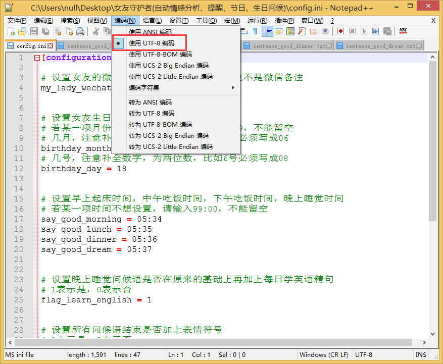 首先,我们设置一个config.ini配置文件,并从这个配置文件开始读取信息。这些参数一看就懂,所以无需多言。