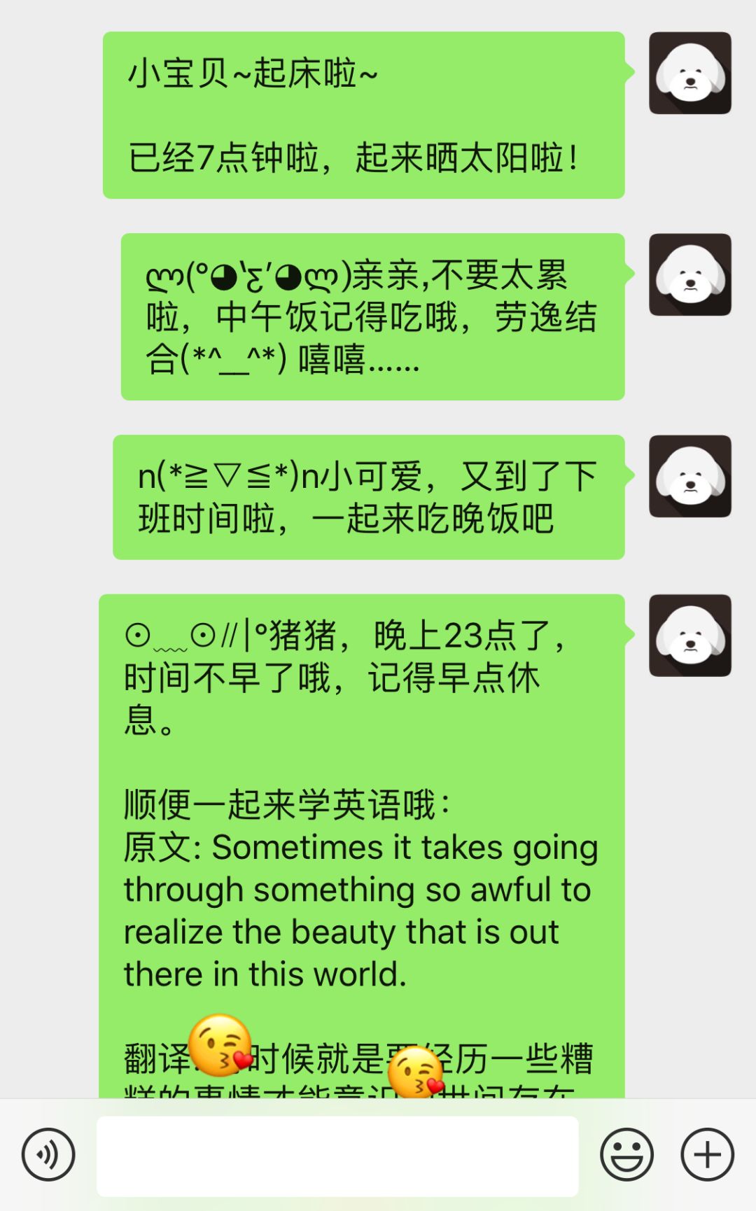 现在,再不用担心了,用python就可以给女友定时发提示消息了,而且不会漏过每一个关键时刻,每天早上起床、中午吃饭、晚上吃饭、晚上睡觉,都会准时发消息给她了,而且还可以让她学习英语单词哦!