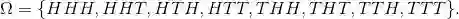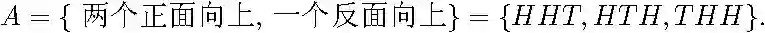 考虑另一个试验,依次抛掷三枚硬币.试验结果是由正面和反面组成的长度为3的序列.样本空间为
