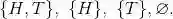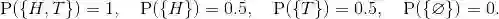 例 1.2 考虑抛掷一枚硬币.一共有两种结果,正面向上{H }和反面向上{T }.样本空间为 ,事件为