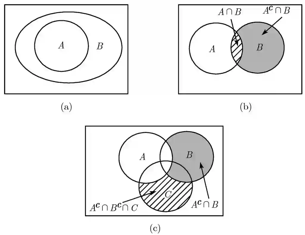 这些性质以及其他类似的性质,都可以形象化地用维恩图证明(见图1.6).注意,性质(c)可以推广成