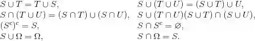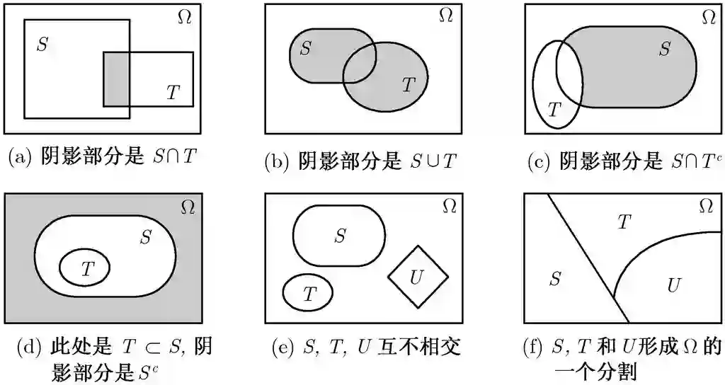 ,则两个集合相等,记作S = T .引入空间的概念是十分必要的.将我们感兴趣的所有元素放在一起,形成一个集合,这个集合称为空间,记作 Ω.当 Ω 确定以后,我们所讨论的集合 S 都是 Ω 的子集.