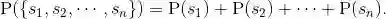 利用概率律的可加性公理,事件 A 的概率等于组成该事件的试验结果的概率之和: