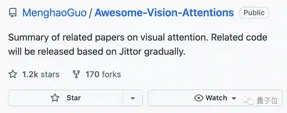 配套的GitHub仓库视觉注意力论文大合集Awesome-Vision-Attentions也有1.2k星。