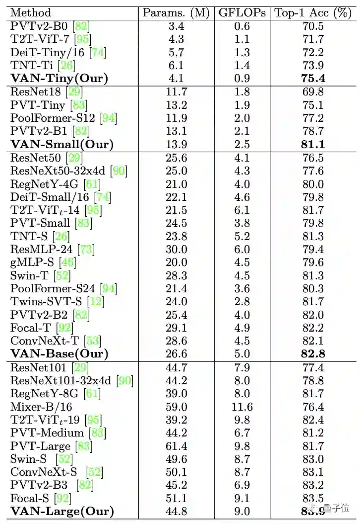 论文最后还提到,现在的VAN只是一个直觉的原始版本、没有仔细打磨,也就是说后续还有很大提升潜力。