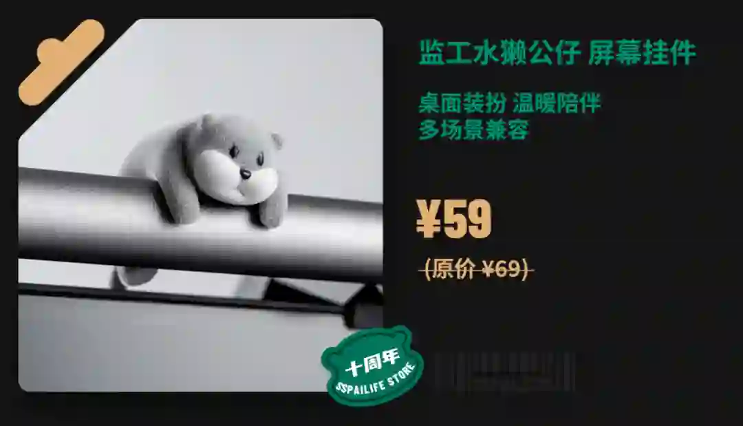 【淘宝】https://m.tb.cn/h.fng4iLF?tk=23I325UbO9j「【少数派】监工水獭公仔 一个装 屏幕挂灯创意装饰显示器趴趴挂件」
