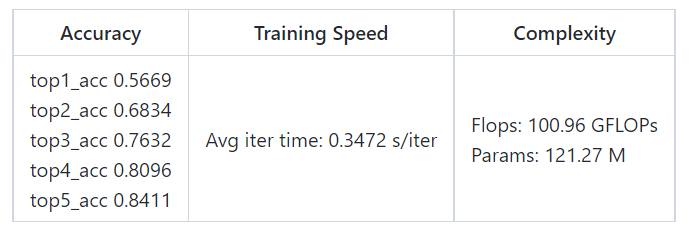 对于RGB输入流,基于注意力的TimeSformer架构实现了3D RGB模型的最佳结果,推理速度也非常快(~0.53s/7s clips)。