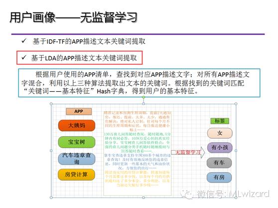 结合用户手机APP的数据,那么基于LDA无监督学习的用户画像过程如下: