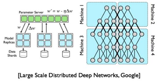 机器学习的分布式模式,又分为数据分布式和模型分布式。数据分布式是指将训练数据切成很多份,不同的机器处理一部分数据。但对于一些较大的模型,单机可能没有办法完成整个模型的运算,于是把模型切成很多份,不同机器计算模型的不同部分。在实际应用过程中,根据不同的场景需要,二者一般是并存的。
