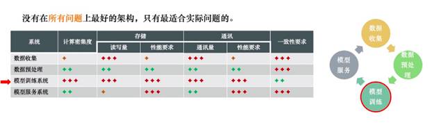 其三,训练系统需要高执行效率。在面对实际问题时,需要对数据、特征表达、模型、模型参数等进行多种尝试,且每一次尝试,都需要单独做模型训练。所以,模型训练是整个机器学习建模过程中被重复执行最多的模块,执行效率也就成为了重中之重。