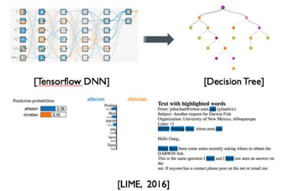 对于一些业务,比如医疗应用、银行审计等都会需要模型的可理解性。对于可理解性,一种常见的解决方法是说做模型转换,比如说像周志华教授提出的Twice Learning方法,可以把一个非常复杂的应用模型,通过Twice Learning的方式转换成一个性能相近的决策树模型,而决策树模型是一个比较容易理解的模型。还有一种做法就是对模型的预测结果给出解释,比如最新的工作LIME借用类似Twice Learning的思想,在局部区域内用可理解模型对复杂模型进行解释。