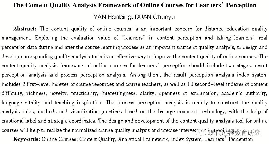 关键词:在线课程;内容质量;分析框架;指标体系;学习者感知