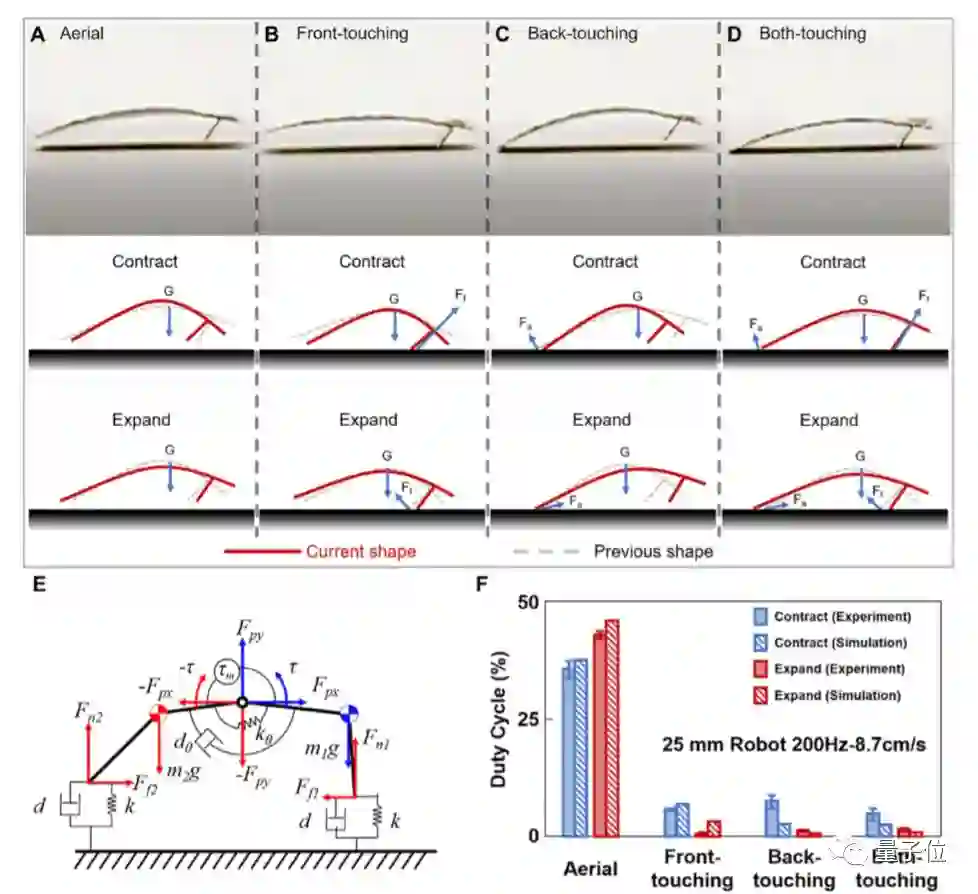 来看高速摄像机下的小强机器人,从A到D分别为上述四种姿态,以及其身体受力分析:
