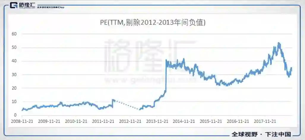 2008年时公司作为原料药企业,资本市场仅给约5倍市盈率;而2014年以来,公司的市盈率一直维持在30倍上下。