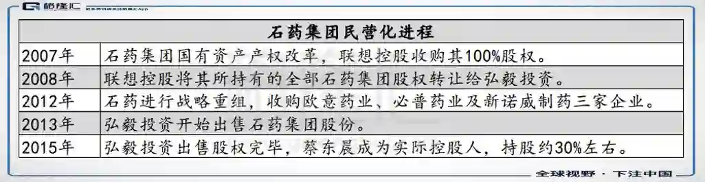 联想系在2008年起就陆续退出,石药最终在2015年实现民营化,实控人变为公司董事长蔡东晨。