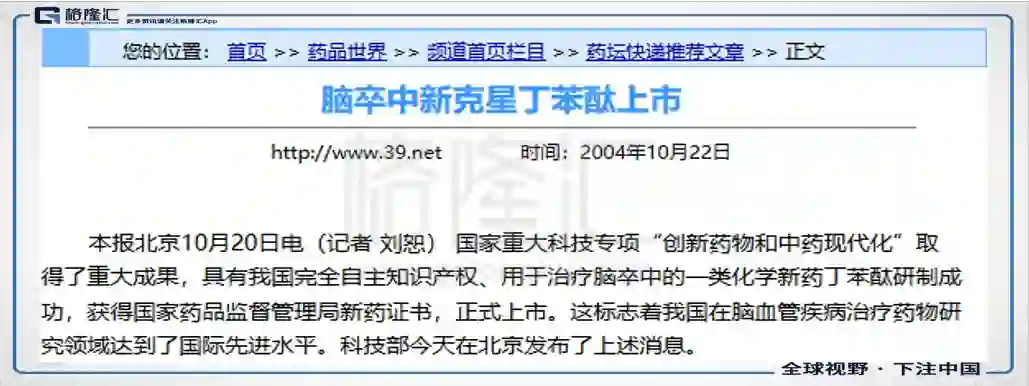 1978年杨俊山教授首次分离出丁苯酞(恩必普的主要成分),并发现了其抗癫痫作用,后经过一系列研究之后,石药在1999年接手丁苯酞并完成临床研究。2005年,丁苯酞软胶囊获批上市,适应症是轻、中度急性缺血性脑卒中,是我国脑血管领域的一类新药;2010年,丁苯酞氯化钠注射液获批上市,适应症是急性缺血性脑卒中患者神经功能缺损的改善。