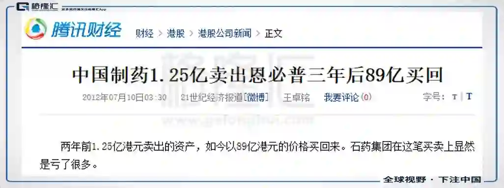 有趣的是,看到恩必普的学术推广效果之后,2012年石药又以远高于售出价收回恩必普药业100%股权。