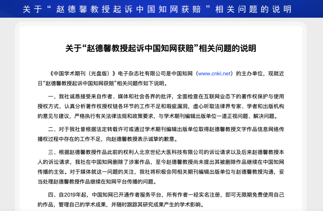 赵德馨教授感到自己的知识成果没有得到尊重,就在2020年8月,他将中国知网告上了法庭,对其擅自收录本人的100多篇论文打起了官司。